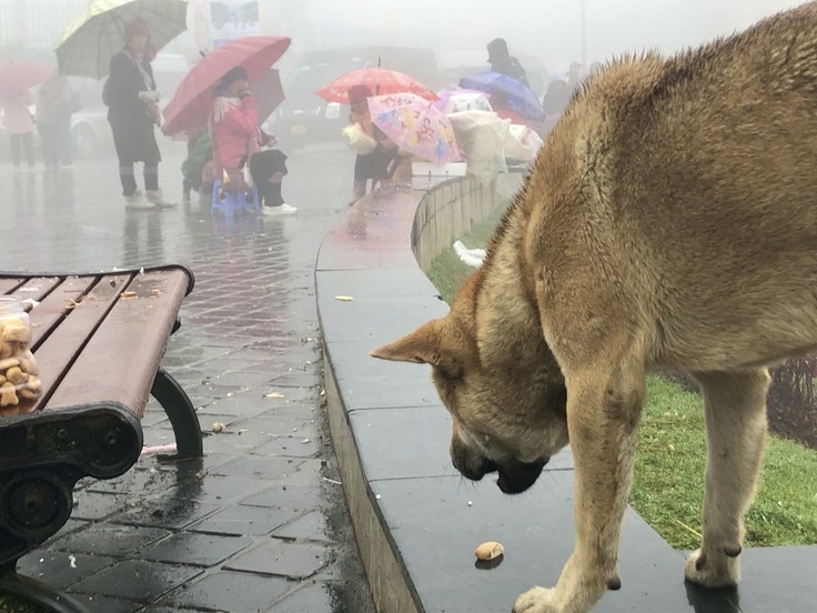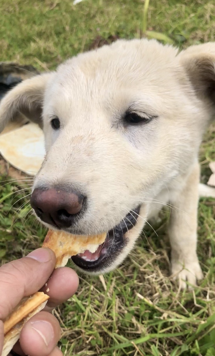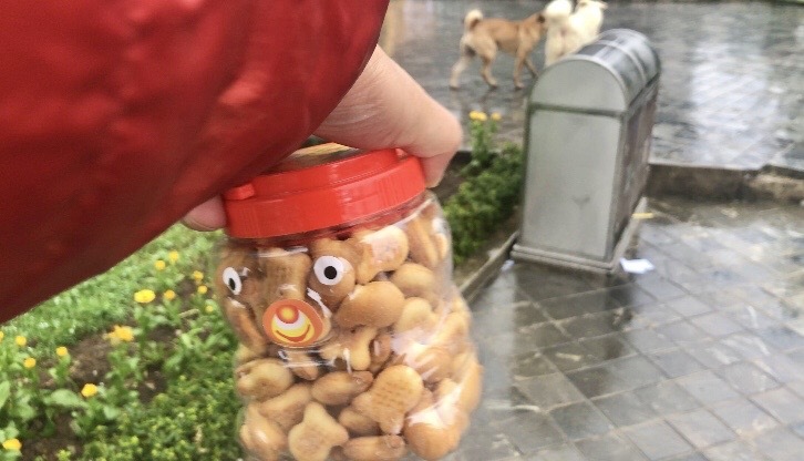 みなさんの支援金で買ったおやつなどを野良犬たちにあげることができました😊