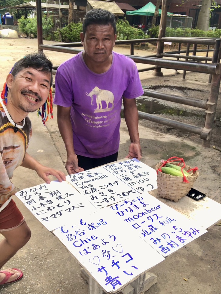 そして20年来の友達の象使いのエムの協力のもと、10000円以上の支援者のみなさんへの《お母さんゾウ🐘からのあいさつ❣️》の動画も撮ることができました^ ^