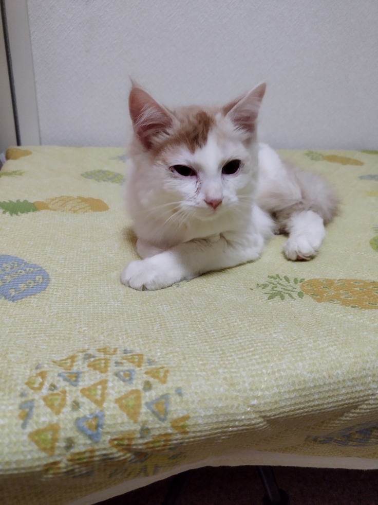 我が家でトライアル開始。この時にはすでに猫風邪で結膜炎を起こしていました。しばらく抗生物質で治療をしていましたが改善しないため、転院したところでクラミジア感染症と診断されました。クラミジア感染症に効く薬を処方していただき2022年1月まで治療をして緩解しました。