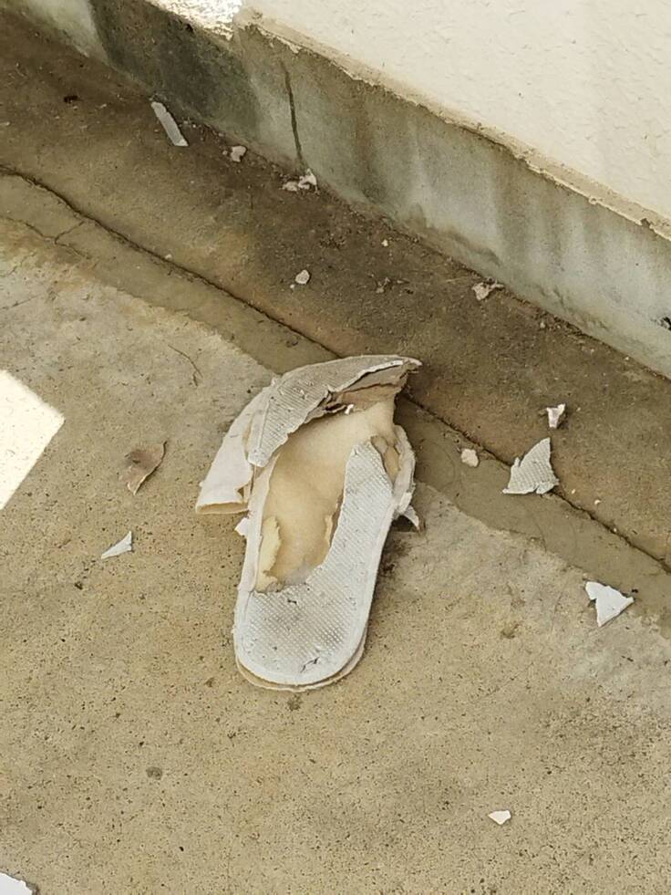 2021年11月、ベランダに置いてあるスリッパが数日間かじられてぼろぼろになることがありました。私の部屋は3階の角から三つ目の部屋です。ネズミ?かと思い隣人と大家さんに確認してもらったところ、被害が出ているのは私のベランダだけでスリッパに白い毛がたくさんついていることがわかり、猫じゃないか?という話になりました。猫がわざわざ3階にきてスリッパをかじることに驚きました。スリッパ以外置いていないのに何をしに来ているのか?猫の姿や声を聞いたことはなく、先住猫も異変に気付いている様子はありませんでした。
