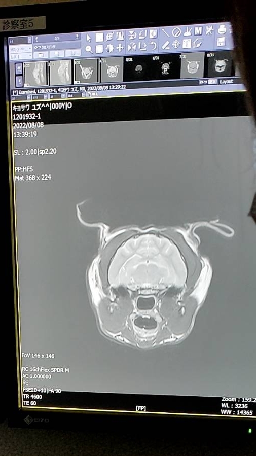 CTとMRIの検査の結果、門脈シャントが見つかり、体循環門脈シャントと診断されました。入院先の高度救命救急センターでは門脈シャントの手術をしていないため、二次診療専門の動物医療センターに紹介状を書いてもらい退院しました。