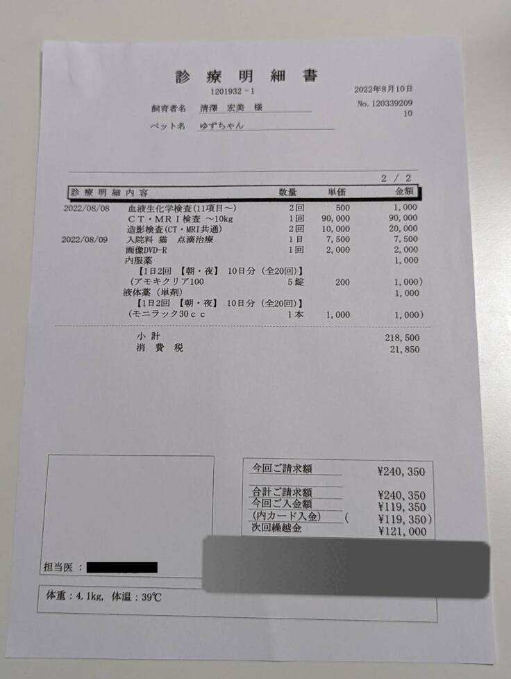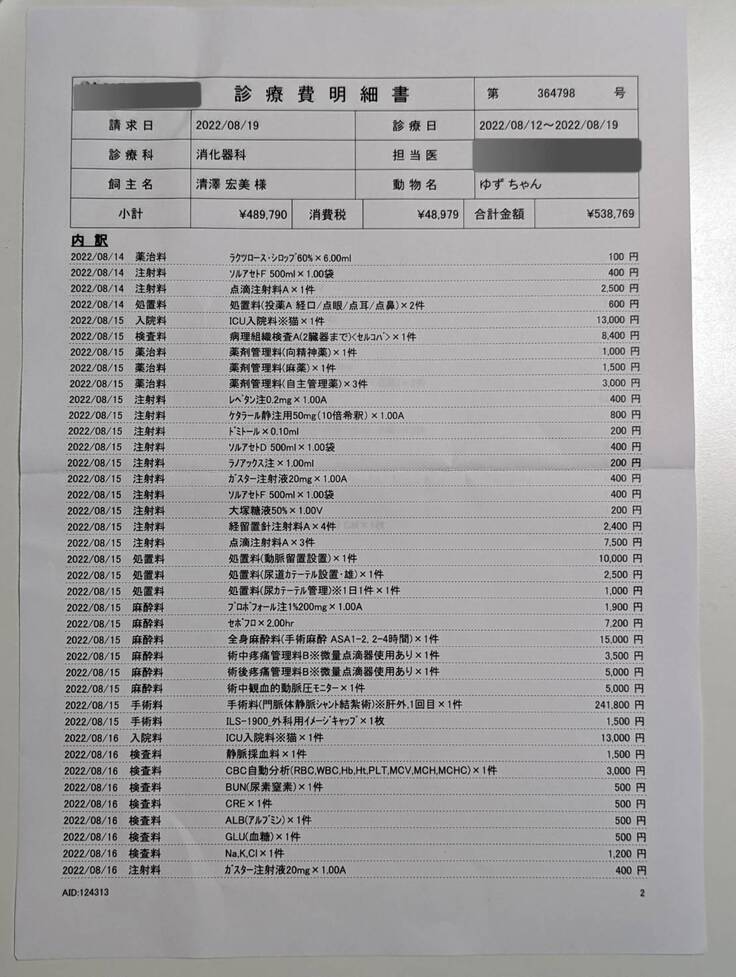 ゆずの治療報告と治療費用の報告をします。ゆずの体調によっては最初に想定していた内容と変わってくるかもしれないのでその場合にはすぐに報告を致します。