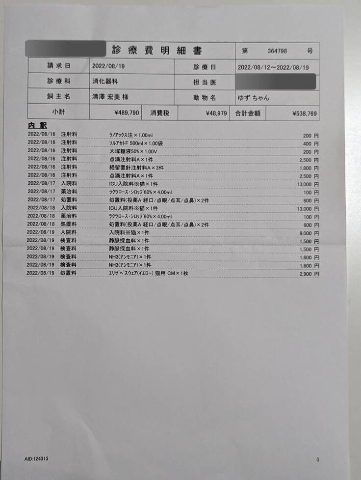 これまでかかったFIPの治療費は、2,287,502円です。ゆずは我が家に来た時から闘病生活のため、ペット保険に入るタイミングを逃し、難病であるFIPと門脈シャントになってしまった現在では保険に入ることができなくなってしまいました。その為、治療費は全額自己負担となり高額になってしまいます。私は、パート収入の一人暮らしです。経済的余裕は全く無く、無茶な医療費を捻出してきました。人懐っこく、可愛いゆずの病気を治してあげたいという私の気持ちを猫好きでゆずが可愛いと思ってくれる家族たちが治療費を貸してくれることで何とかやってこれました。