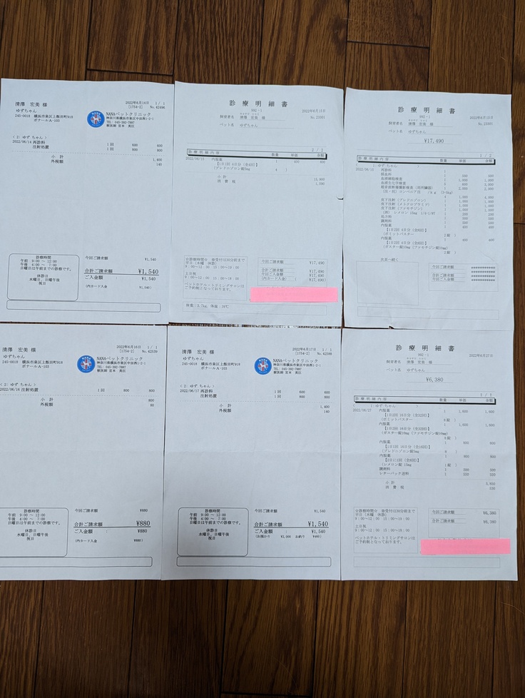 ※FIP治療と門脈シャント治療のために5か所の動物病院に行きましたが掲載許可を得られたのはNANAペットクリニックのみでした。そのほかの病院は動物病院の希望により名称は伏せますが資料の掲載許可は得ています。
