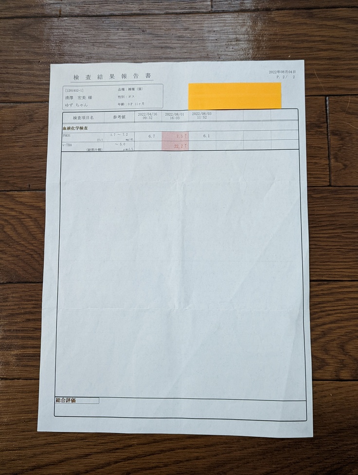 ゆずは、8月にFIPの緩解診断をしてもらうために血液検査をする予定でしたがFIPの特徴的な症状が出ていなければ緩解だと思って今は門脈シャントの治療が優先ということになりました。