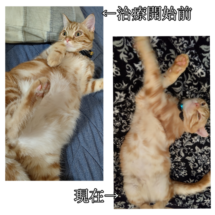 腹水も抜いていただきだいぶ楽になったのかよくお腹を出してごろごろしています。