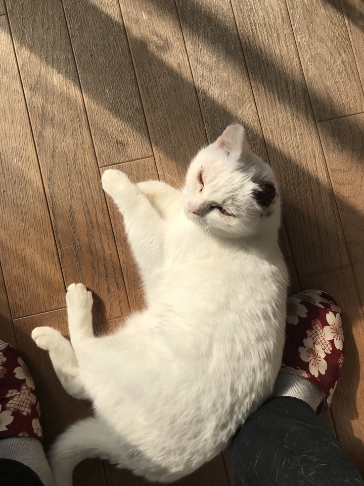 それでも毎日生きる為に何とかして食べようと一生懸命頑張っています。こんなに酷い状態でもいつもの様に甘えにきてくれます。