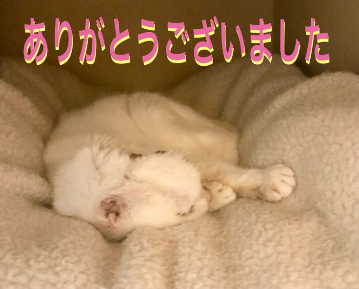 皆様がピィちゃんに充分な治療費を御支援してくださり、ピィちゃんの為にお祈りくださり、僅かな発作で殆ど苦しむ事もなく眠るように息を引きとる事ができました。
