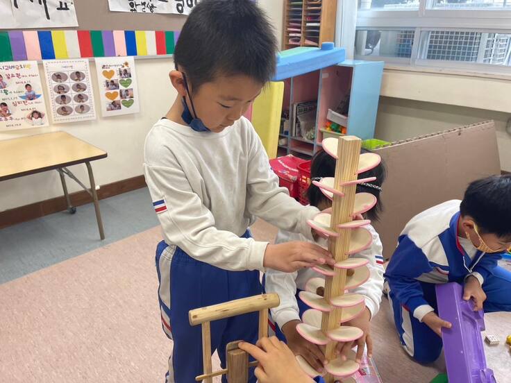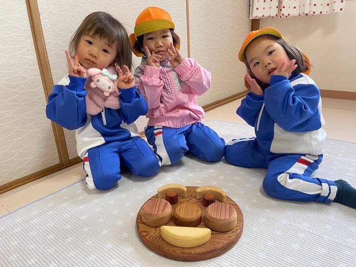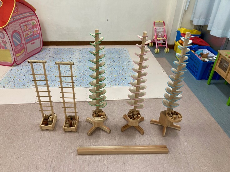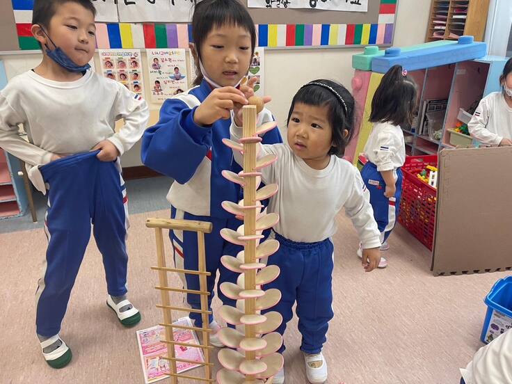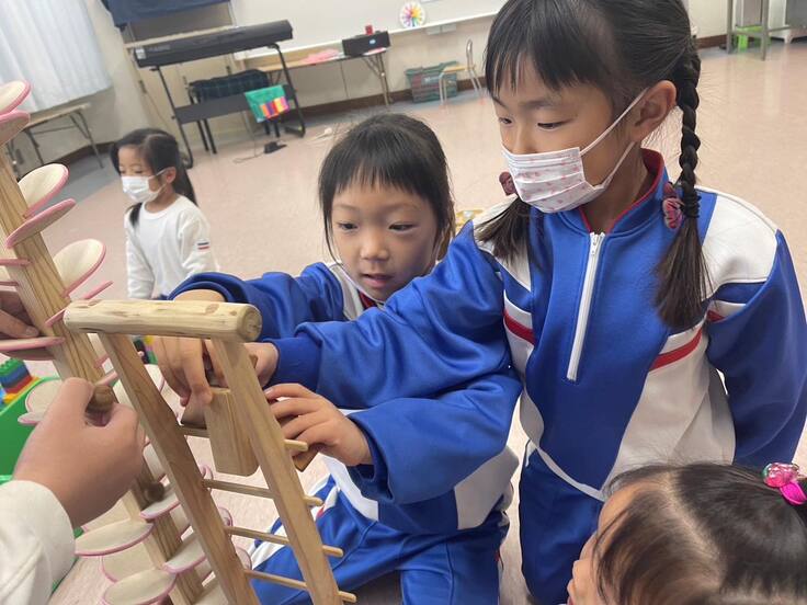 転がり落ちる木の音色が非常に良く、心が癒され園児たちも微笑んでいます♪