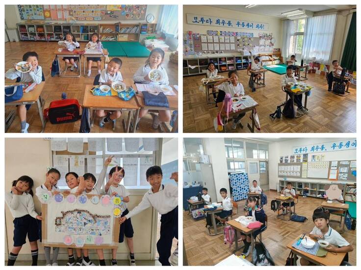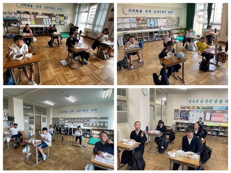 お昼は、オモニたちが作ってくださった愛情たっぷり美味しい給食をいただきました!