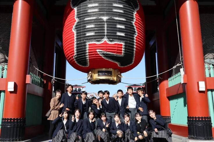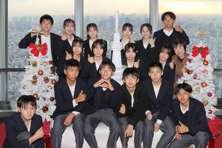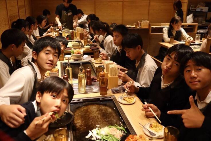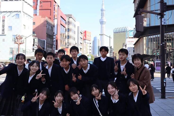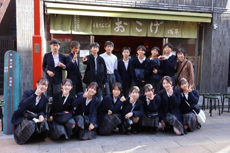 東京に移動し、浅草寺を巡った後、東京名物もんじゃ焼きを堪能しましたゆや。東京スカイツリーにも登って16名全員仲良く記念撮影。