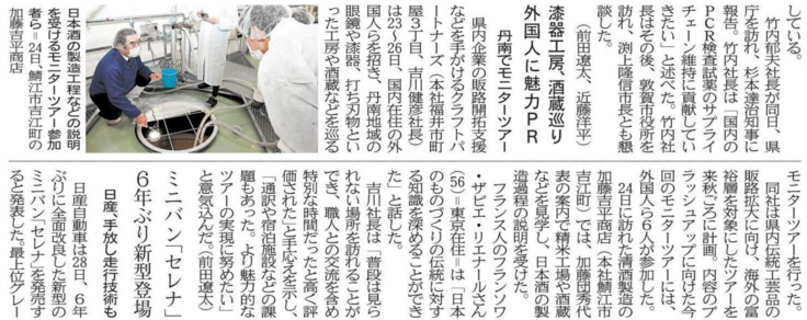 また、11月29日付の福井新聞に下記のとおり掲載されました。