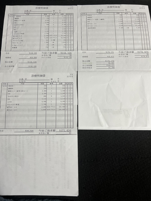 とにかく薬代が高額で大変です、もうすぐ投薬も終わりに近いのですが体重が2キロ200グラム超えたので明日病院に行って薬の追加貰って来ます。