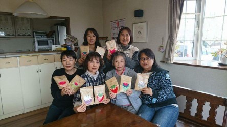 支援が増える=いちごエコたわしを仮設住宅で作っていらっしゃる方への支援にもなると考えたのです。