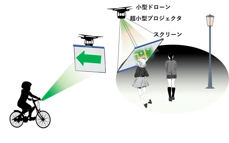 また、ドローンが個人レベルで普及する時代には、車や自転車に伴走して危険表示やナビ表示が可能になり、歩きスマホ撲滅にもつながることになるかと思います。