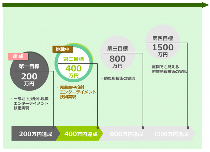 世の中に役立つレーザー空中サインシステムを確立させたいと考えております。ぜひ皆様のご支援をお願いいたします。