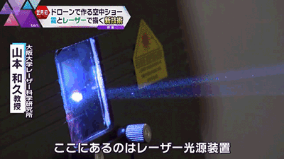 はじめまして、大阪大学レーザー科学研究所の山本と石野です。当研究所では可視光半導体レーザー応用システムとして、これまでカラーLiDARや新規レーザー照明システムを立案して動作を実現してきましたが、最近はドローンとレーザーを用いた「レーザー空中サインシステム」の新規開発を行い、2022年8月の夢洲実証実験で飛行と投影に成功しました。