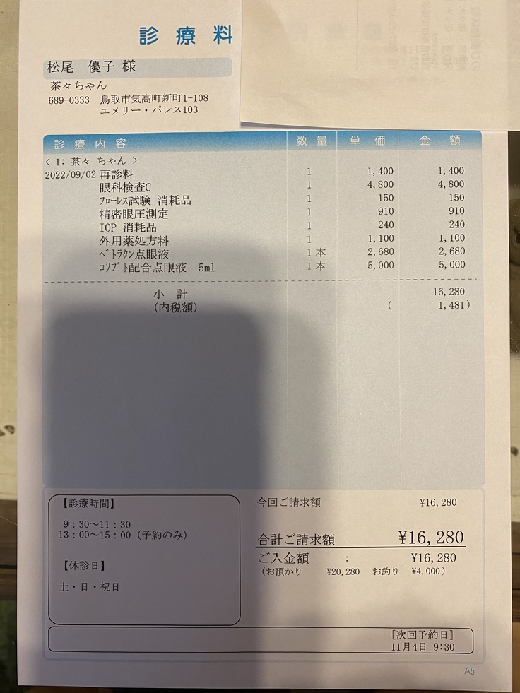 茶々の,右眼緑内障による,眼痛除去。眼痛からの,解放と,茶々の,安楽な生活。