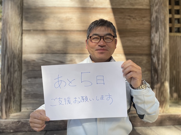 残り時間が5日となり、苦しい戦いを強いられていますが、ここまで支援してくださった方々に恩返しするためにも、どうしてもこの挑戦を成功させたいと思っています。
