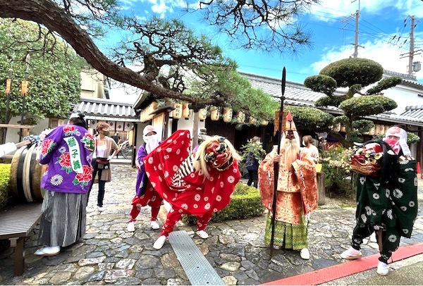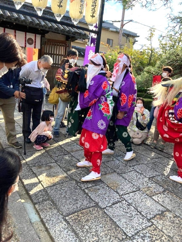 10月12日にならまち御霊神社様にて例祭が執り行われまして、3年ぶりの渡御に獅子舞で参列させていただきました。