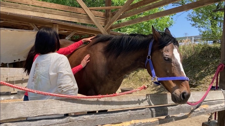 馬のマッサージは治療目的ではなく、触れ合うことで馬との信頼関係を深めて