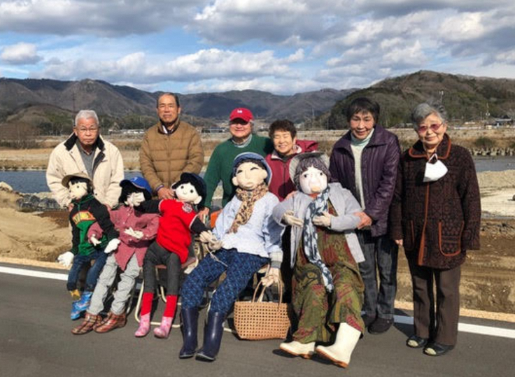 西はりまの自然をまもる会の”カカシ作りグループ”とカカシたち)