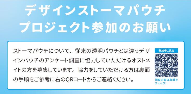 こんにちは。デザインストーマパウチプロジェクトです。大変お待たせしました!デザインストーマパウチの配布が開始になりました。みなさまからの支援で今回40名のオストメイトの方にデザイナーの皆さんが作成したこのデザインストーマパウチを配布します。ご参加頂ける方は、詳細を以下のリンクよりご確認を頂き、申し込みフォームへの入力をお願い致します。ひとりでも多くのオストメイトの方にお配りできることを楽しみにしております!