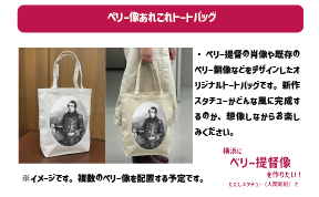 ペリー像あれこれトートバッグ、ペリー提督グッズ詰め合わせはともに2024年3月にお届けします。