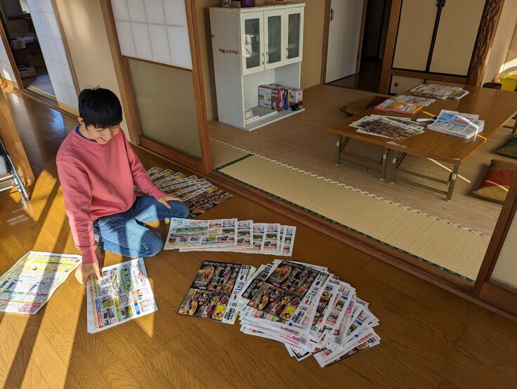 1枚ずつ集めるのは終わりが見えず、息子はべそをかいていました。