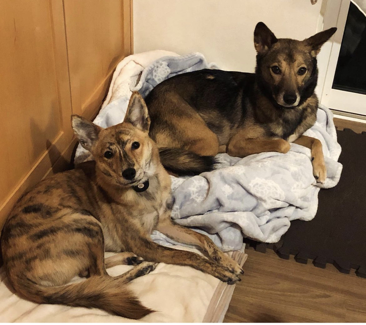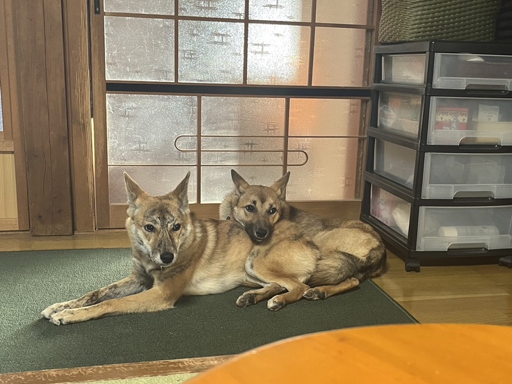 先輩ワンコさんも元野犬の保護犬さん。野犬に理解のある里親様に、頼もしいお姉さん犬が色々教えてくれるので、心強いです!