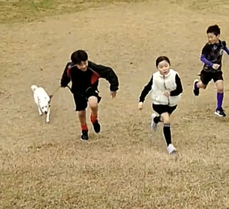 里親様ご家族の子どもさんたちと一緒に色んな経験をたくさんして成長中。公園での全力ダッシュでは、しっぽも上向きクルリンに!