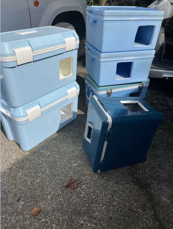 奈良の過酷な冬を乗り切って貰うために皆様から譲って頂いたクーラーBOXで作った猫のお家も置いてきました。(クーラーBOXは内側が断熱材なので出入り口を開ければ完成です!)