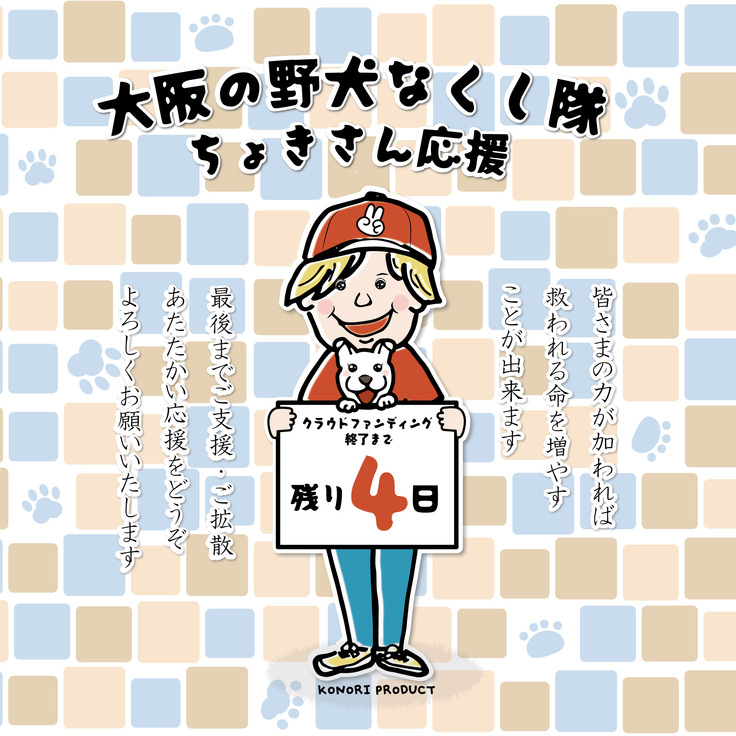 プロジェクトを応援いただき誠にありがとうざいます。大阪の野犬なくし隊の佐敷(ちょき)です。
