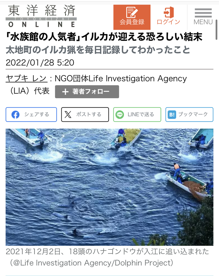 今、幸いなことにたくさんの方々が投稿を見てくださっているので、知ってもらうチャンスだと思いイルカのことも書きます。