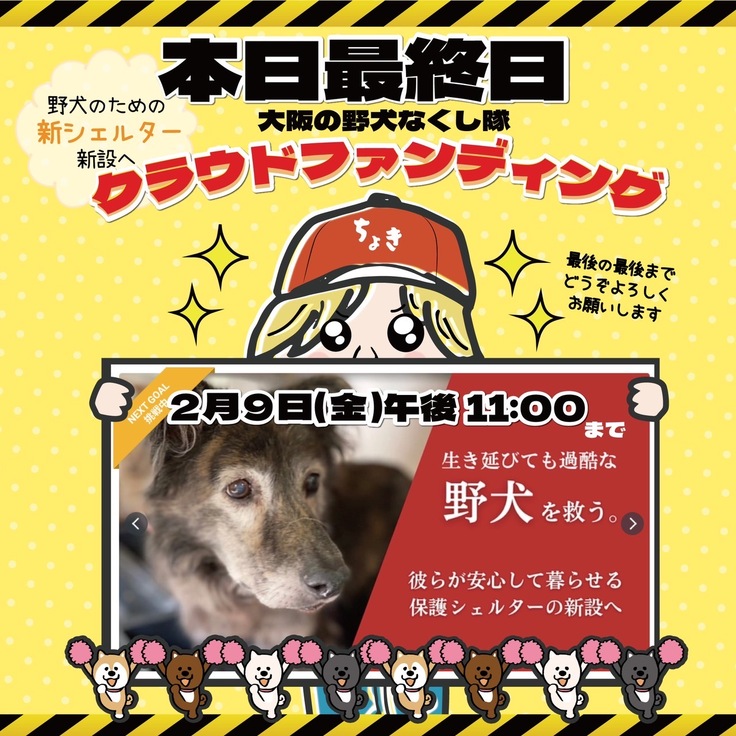 【人知れず消えていく命をゼロに。悲願「野犬の保護シェルター」新設へ】https://readyfor.jp/projects/osakanoyaken