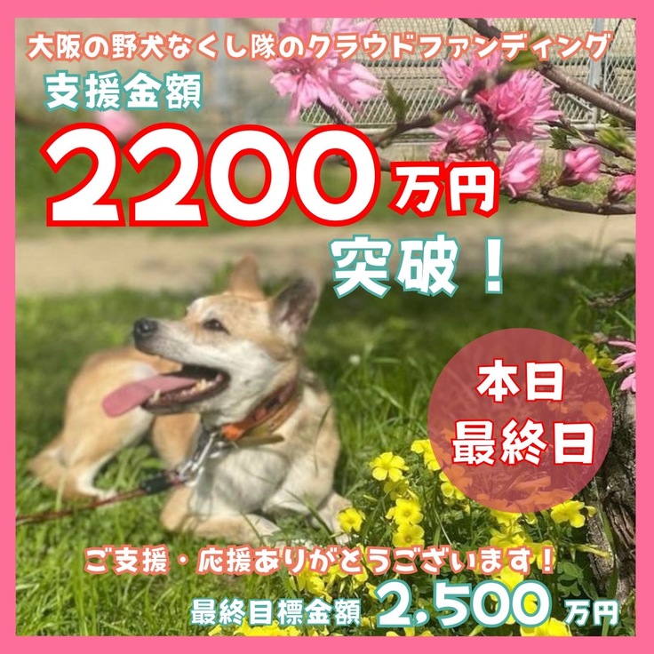 全国の野犬の殺処分をゼロにする、そして野犬をゼロにすることを目指しています。最後までどうかご支援、応援をどうぞよろしくお願いいたします。
