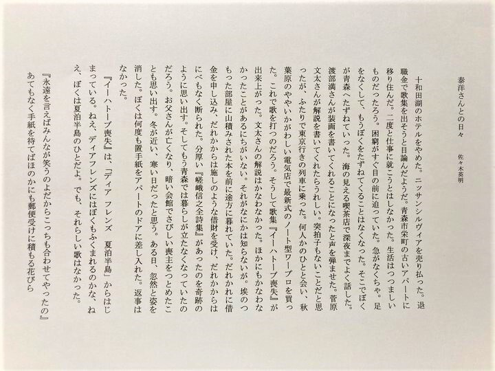 青森時代の友人だった寺山修司記念館館長の佐々木英明さんが、『イーハトーブ喪失』出版のころのことを、教えてくださいました。