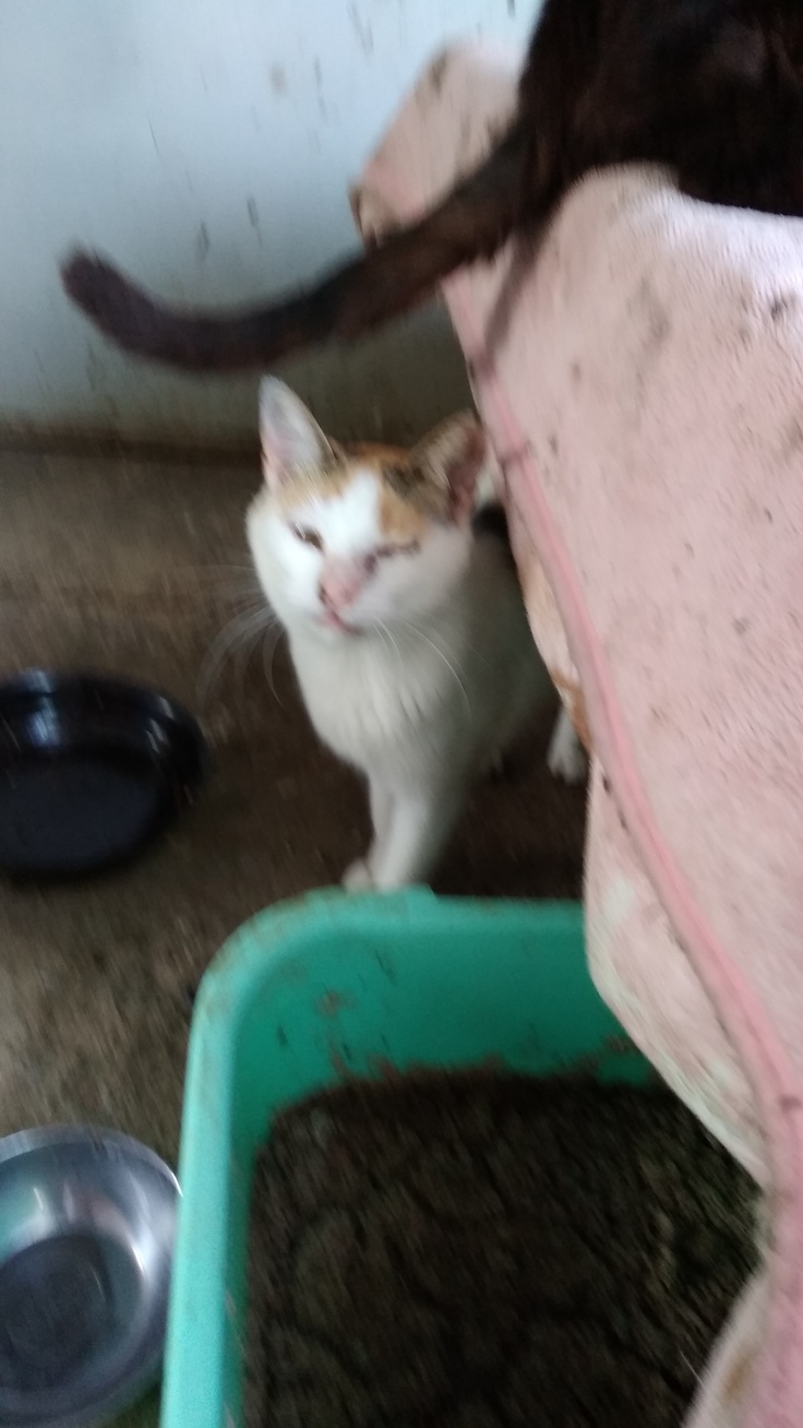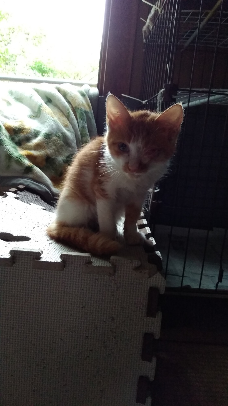 彼は、あるスーパーに突然現れて、入り口に居座り鳴き続けていたそうで、店長さんから相談があり、保護しました。風邪がひどい状態で弱いので、なかなか成長しないけど、控えめなボーイ猫です。
