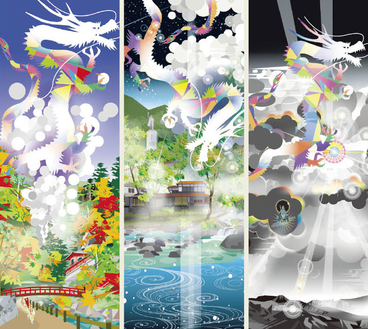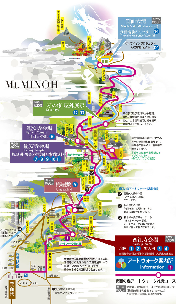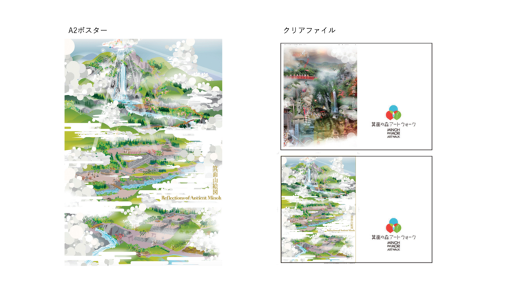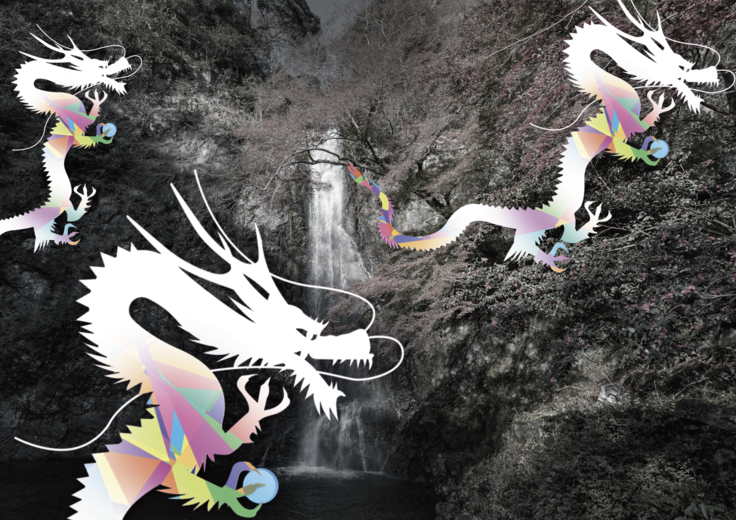滝と⿓をテーマに、箕⾯の歴史・⽂化を題材にしたアート作品を、