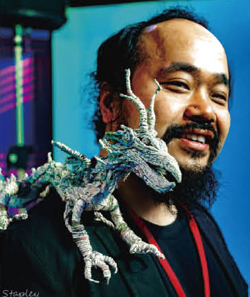 1974年岩手県生まれ、京都府在住。京都市立芸術大学で漆工を学ぶ。奈良時代に隆盛した阿修羅像に代表される脱活乾漆造に興味を持ち、現代のメディアに登場する偶像と過去の偶像である仏像を合わせたひとがたを制作する。越後妻有アートトリエンナーレ2006や現代美術家、天明屋尚氏プロデュースによるBASARA展に出品。漆芸などの伝統技術を使いながら、現実と虚構の間にゆれるメディア社会の盲点をつく作品を発表している。