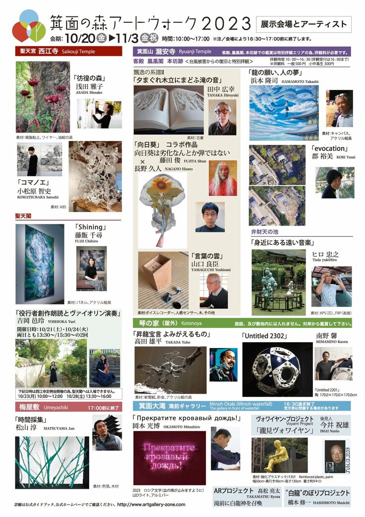 参加アーティストが箕面の文化、歴史、自然と関わることで生まれた