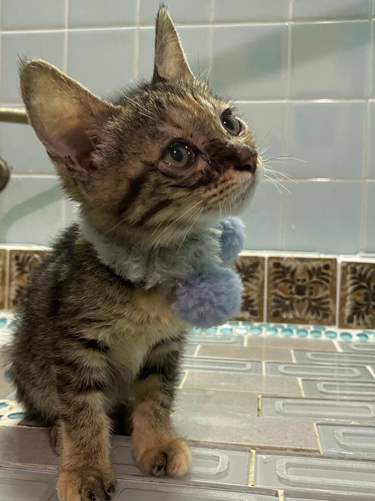 眼も光くらいしか感じられないだろうと診断されたこの子はすごく甘えん坊で、人恋しい子でした。TNRの猫が多いところでしたが、この子が入る余地はありません。