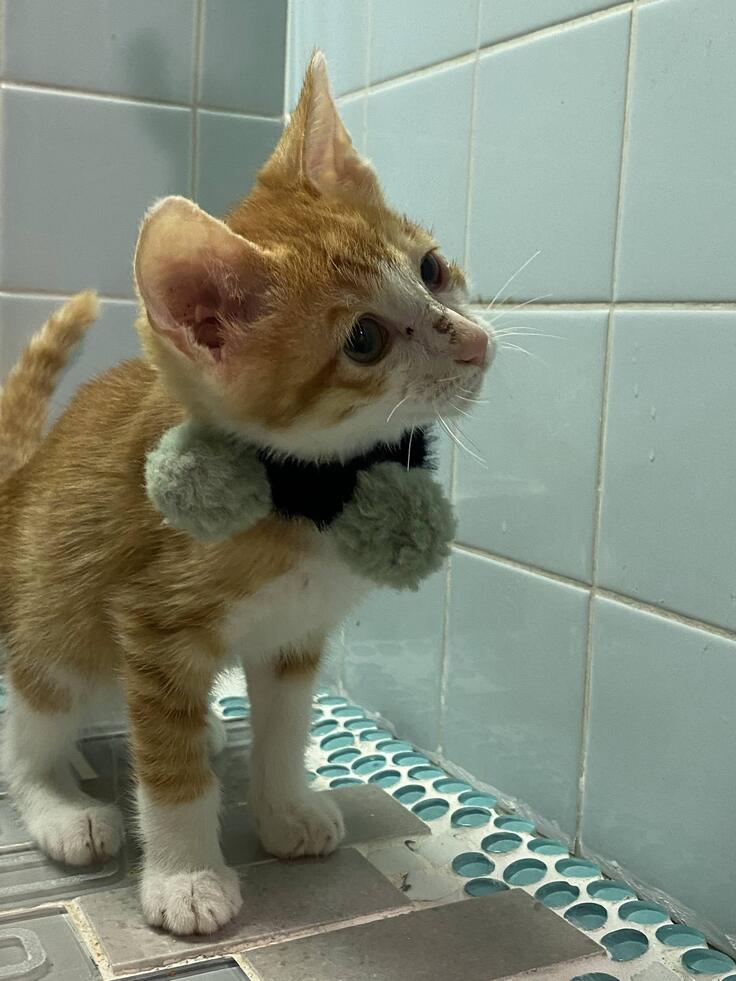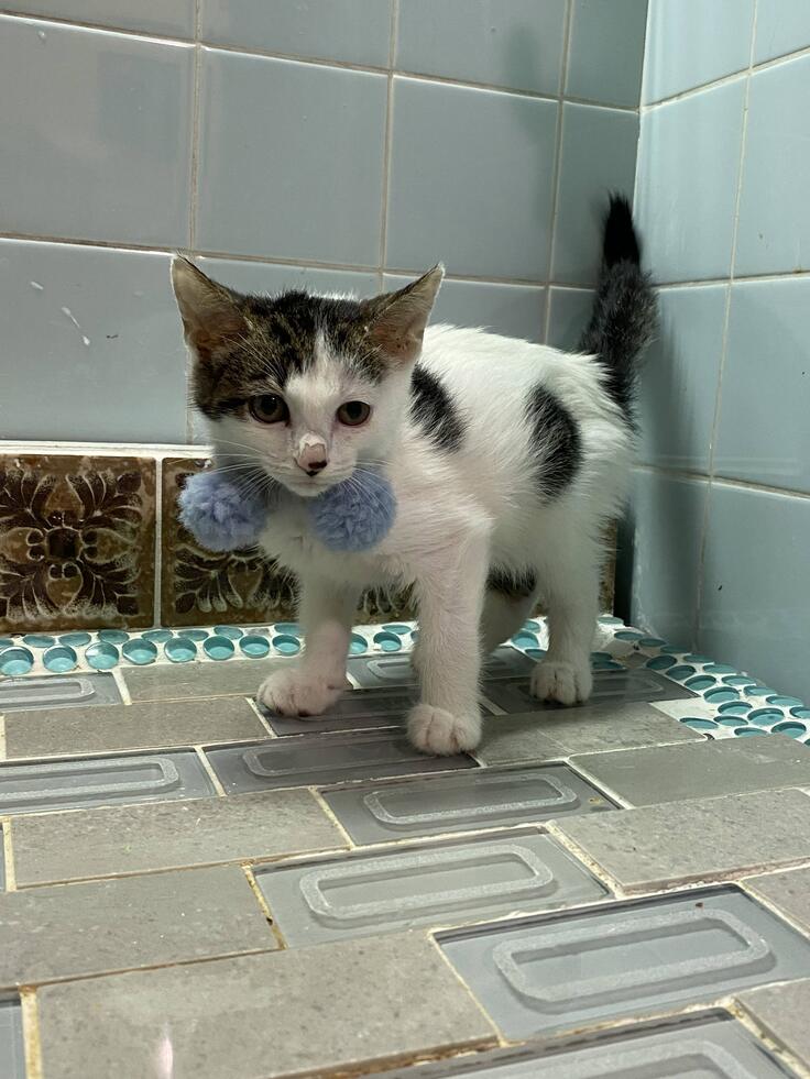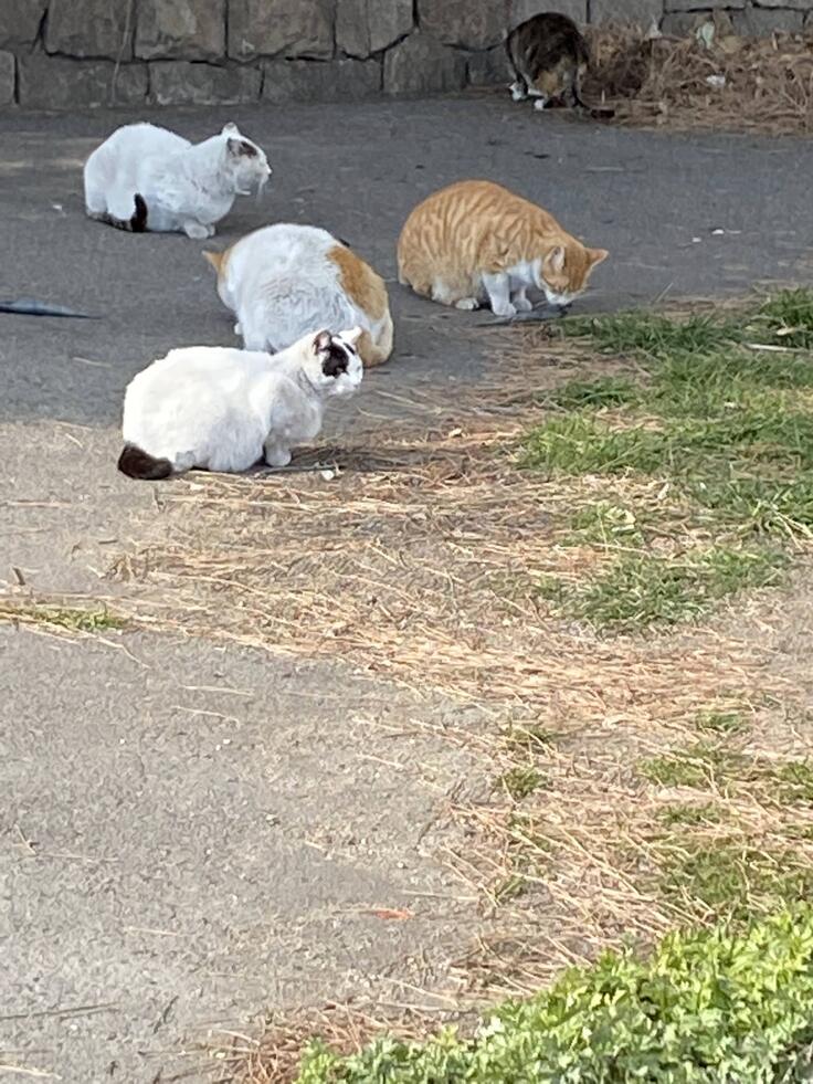 TNRの猫がいる姫路城に、この3匹は捨てられました。捨てられたという情報はすぐに入り、探したのですが夜なので、なかなか確認できませんでした。そのうち、白黒と茶白の子は堀の城壁のくぼみにいることがわかりましたが、助けに行くことはできません。キジトラの子だけが見つからないまま、一晩が過ぎました。キジトラは一番小さかったのでついていけなかったのでしょう。朝になり、2匹が登った城壁のそばにで見つかりました。無理してついていかず、そこから動かずにいてくれたことが幸いでした。2匹も無事に戻ってきました。雨も降らず、寒くもない季節でしたが、夜には野生動物も姿を現します。堀にも落ちず、野生動物にも襲われず、無事でいたことが奇跡の様です。