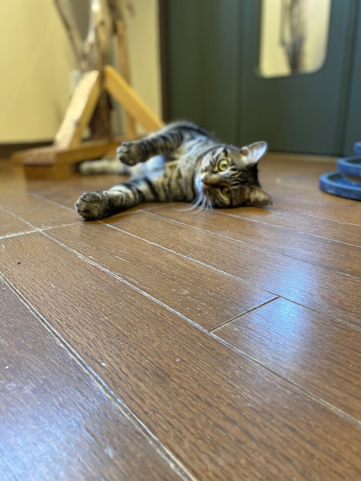 こちらに来てまだ日が浅い麦わら猫の女の子。