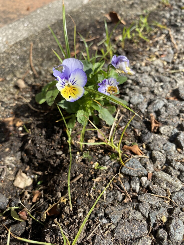 こぼれ種から芽を出したパンジーも、花壇の植物の間から存在感をアピールしているクローバーも、もう少し毎日を楽しもうね。