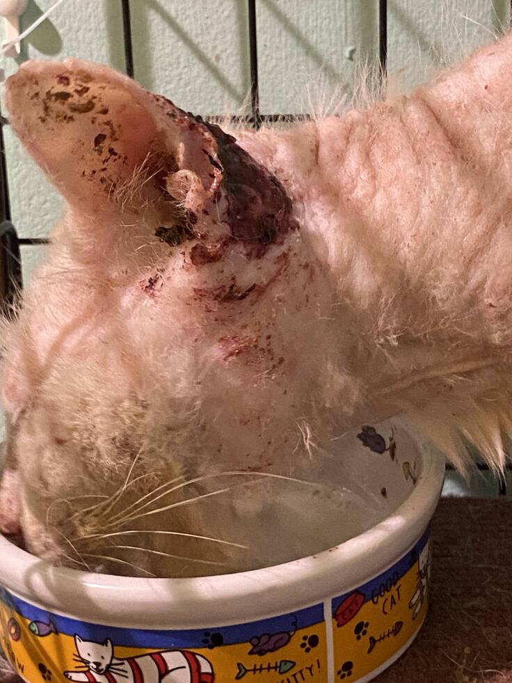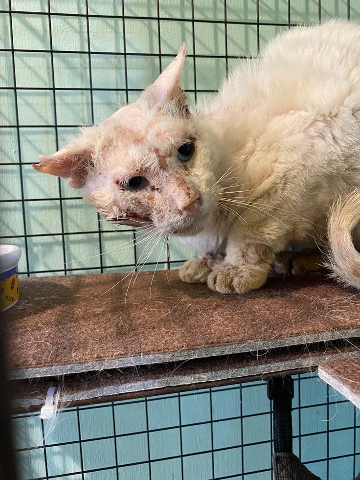 保護した当初は、食べるところまでいかない子が多いですが、おそらくすごくお腹が空いていたのでしょう。歯も抜いて痛みも治まったのかもしれません。