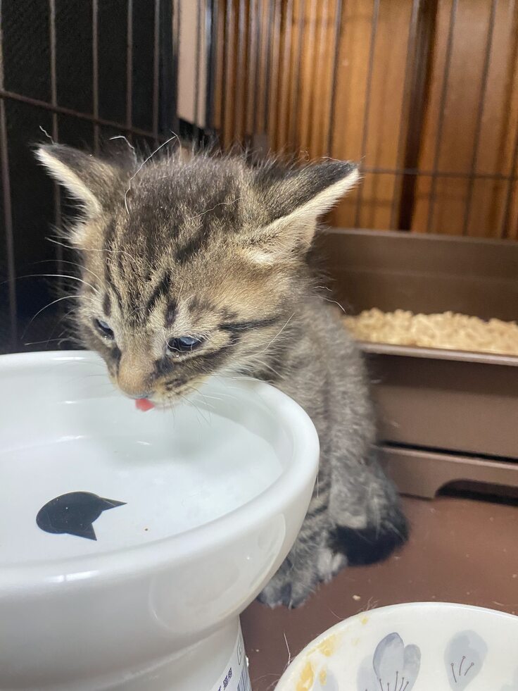 ママとはぐれてしまった子猫も少しずつ馴れてきましたが、まだまだ警戒心一杯です。