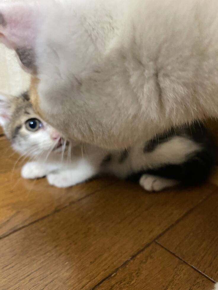 おしりもぺろぺろしてもらって、まだまだママにとっては目が離せない。