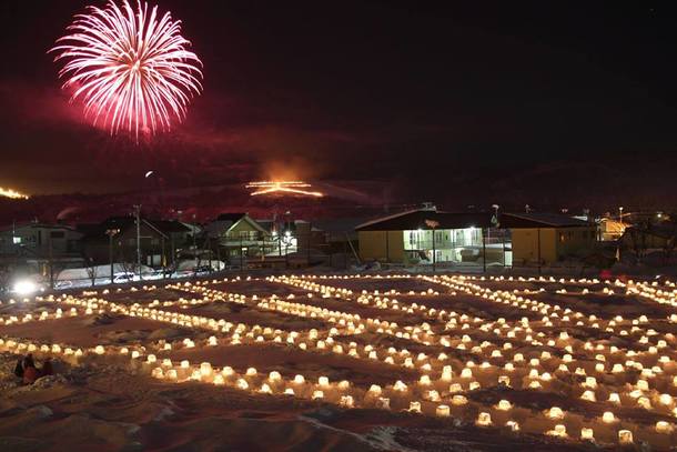 火文字焼きは全国レベルでは、京都の五山送り火(大文字焼き)、奈良の大文字焼き、阿蘇の火祭り等数々ありますが、「北の天文字焼き」は雪上で縦220m・横150m、ドラム缶270個を配置して点火しており、『日本一規模の火文字焼き』との評価をいただいております。