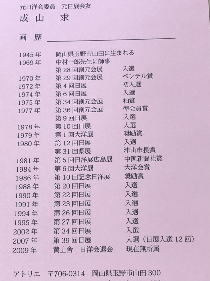 今までの活動 自宅アトリエにて絵画教室、小学校写生大会指導、中学校美術教師のオファー、サヨナラ宇高連絡線のTシャツ、ハガキデザイン、地元施設等に絵画寄贈など。画歴50年地元に愛された画家の父の最後の個展を盛大に地元で開催して、有終の美を飾って欲しい。